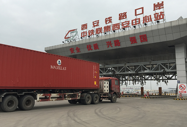 Маршрут международных железнодорожных грузовых перевозок Сиань -- Центральная Азия был открыт 28 ноября 2013 года. В начальный период эксплуатации по нему ежемесячно проходил лишь один рейс. В настоящее время на регулярной основе по маршруту отправляют по 3 состава в неделю. За три года было перевезено 378 тыс тонн грузов на общую сумму 515 млн долл США.